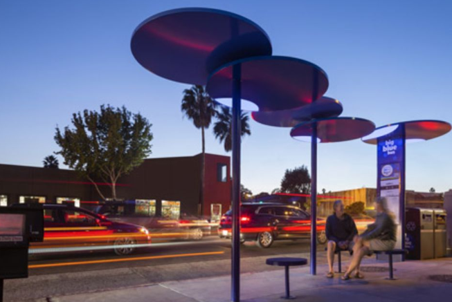 圣莫妮卡漫長而漫長的海岸線不僅賦予了城市陽光沙灘,也賦予了城市熱情奔放的城市氣息和天馬行空的想象。市民不喜歡半封閉的公交站臺,所以很多人都會看到一個開放式站臺設(shè)計,和這里的居民一樣熱情奔放。