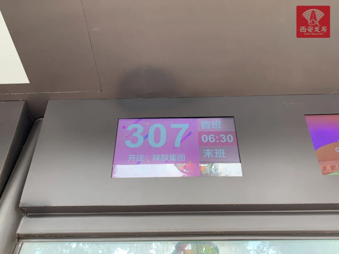 西安公交集團(tuán)站牌管理中心負(fù)責(zé)人 樂嘉欣:“新式的智能候車廳,智能主要體現(xiàn)在站牌上,原來老式站牌只是一個(gè)燈箱,現(xiàn)在增加了一個(gè)液晶電子顯示屏。”
